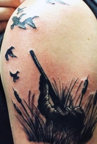 难以置信的现实主义风格猎人和飞行鸭纹身图片