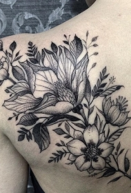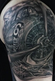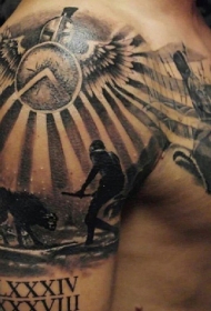 肩部黑色点刺太阳背景肩雕刻风格纹身图片