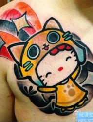 最好的纹身馆推荐一款肩部卡通纹身图案