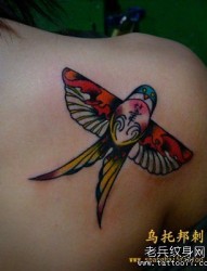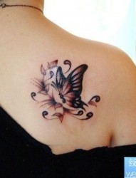 520纹身推荐一幅肩背蝴蝶花纹身图片