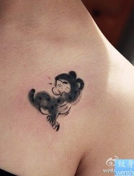 纹身520图库推荐一幅女人肩背梵文纹身图片