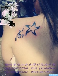 纹身520图库推荐一幅女人肩背五角星纹身图片
