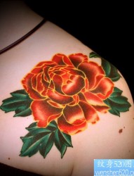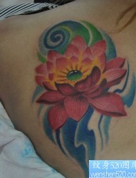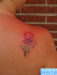 肩部纹身图片:潮流经典肩部彩色莲花纹身图片纹身作品