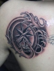 肩部纹身图片:肩部指南针纹身图片纹身作品
