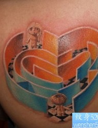 一幅另类潮流肩部彩色爱心迷宫纹身图片