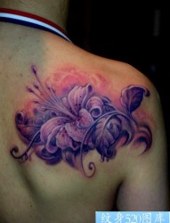 肩部纹身图片:绚丽超酷的美女肩部百合花纹身图片作品