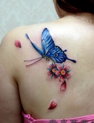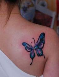 女人喜欢的肩部彩色蝴蝶纹身图片