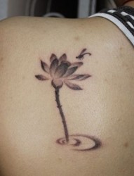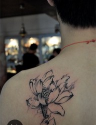 女孩子肩部水墨风格莲花纹身图片