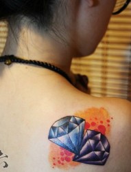 一幅女孩子肩背彩色钻石纹身图片