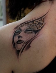 美女肩部威尼斯面具纹身