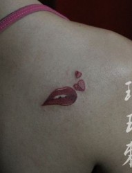 女孩子肩背好看的唇印纹身图片