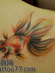 美女肩部彩色小金鱼纹身图片