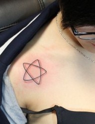 女孩子喜欢的肩部线条五芒星纹身图片