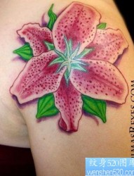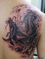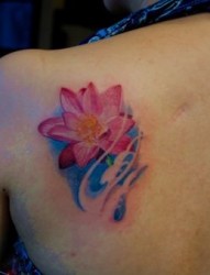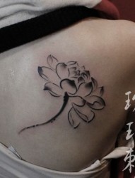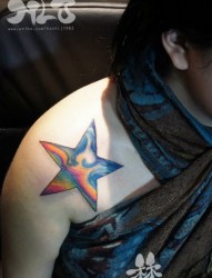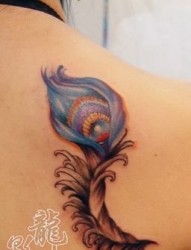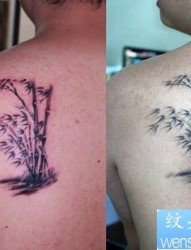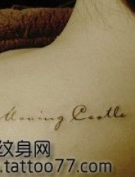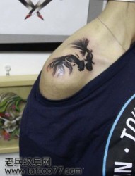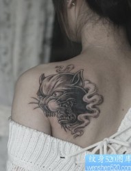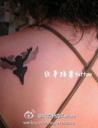 女孩子肩背潮流流行的蝴蝶结纹身图片