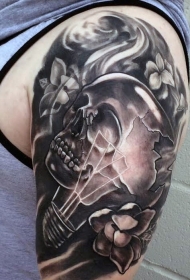 新风格的黑灰人头骨灯泡纹身图案