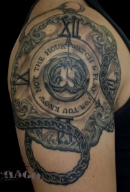 惊人的黑灰旧手表肩部纹身图案