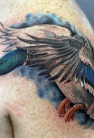 飞天鸭的彩色肩膀纹身图案