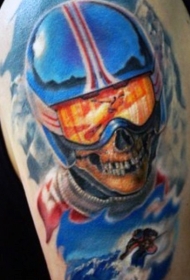 肩部彩色令人毛骨悚然的滑雪骷髅纹身图案