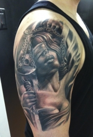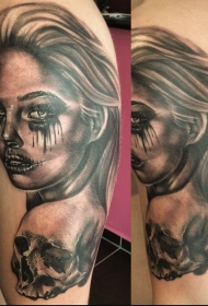 现实主义风格的黑灰女人肩部纹身图案