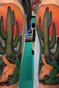 新风格彩色肩部沙漠仙人掌纹身图案