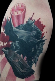 男性肩上彩色蝙蝠侠纹身图案