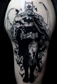 肩部黑色蝙蝠侠与蝙蝠纹身图片