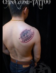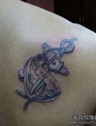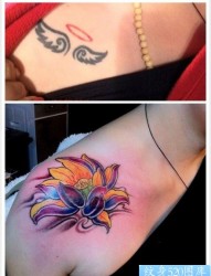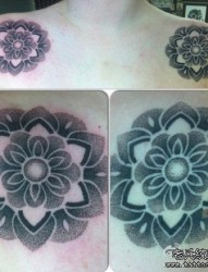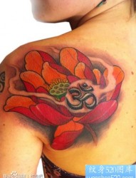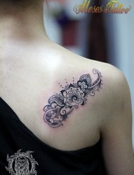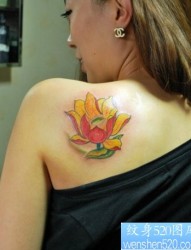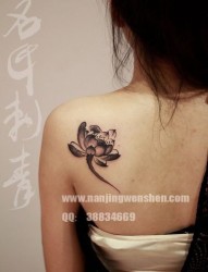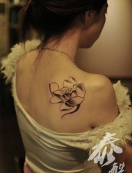 女人后肩背唯美时尚的黑白莲花纹身图片