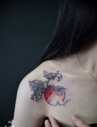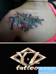 女人肩膀处经典时尚的蝙蝠纹身图片