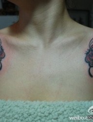 女孩子肩膀处潮流好看的蝴蝶纹身图片
