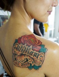 美女肩背时尚漂亮的玫瑰花纹身图片