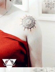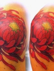 女人肩膀处时尚唯美的菊花纹身图片