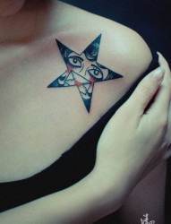 女人肩膀处精美时尚的五角星纹身图片