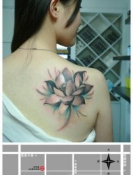 女人肩背唯美时尚的莲花纹身图片