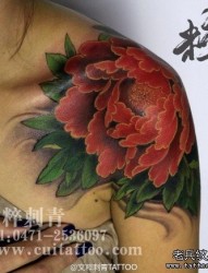 女人肩背漂亮时尚的牡丹纹身图片