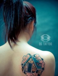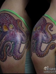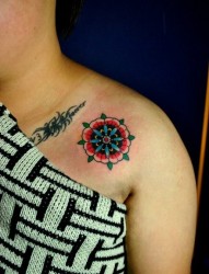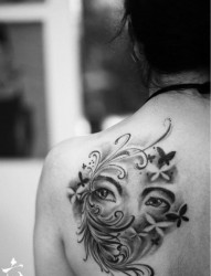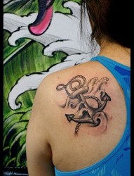 女人肩背时尚经典的鲨鱼船舵纹身图片