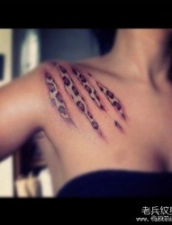 纹身520图库分享一幅肩部豹纹纹身图片
