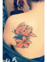 女人肩背唯美时尚的枫叶纹身图片