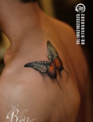 男人后肩背漂亮唯美的蝴蝶纹身图片