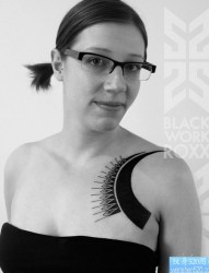 女孩的肩部简单黑灰纹身写真作品推荐