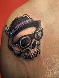 纹身520图库分享一幅肩部骷髅头纹身图片