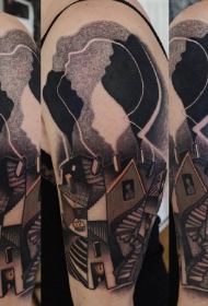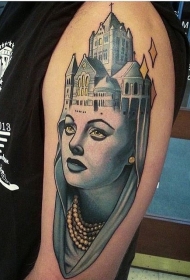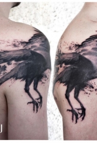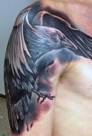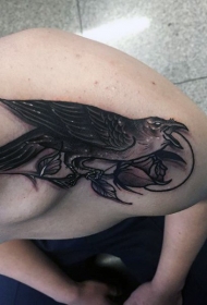 新学校风格的黑灰肩部乌鸦飞纹身图片