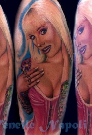 奇怪的彩色蜡烛和人物肖像纹身图案