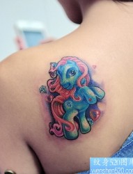 一幅女人肩部独角兽文身图片由纹身520图库推荐