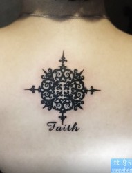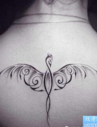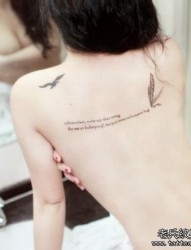 一幅性感女人背部羽毛字母纹身图片由纹身520图库推荐