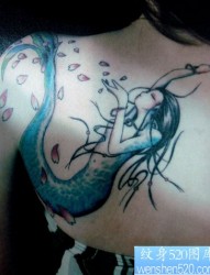 一幅女人肩部彩色美人鱼纹身图片由纹身520图库推荐