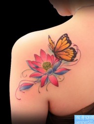 肩背莲花蝴蝶纹身图片由最好的纹身推荐