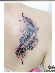 一幅女人肩背羽毛纹身图片由纹身520图库推荐