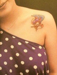 一幅女人肩背彩色纹身图片由纹身520图库推荐