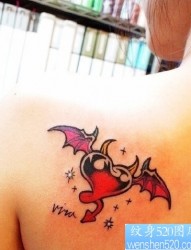 纹身520图库推荐 一幅肩背彩色小魔鬼纹身图片