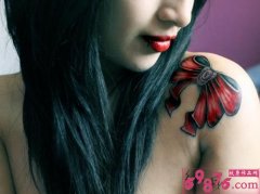 比基尼美女肩部玫瑰娇艳刺青图案图片